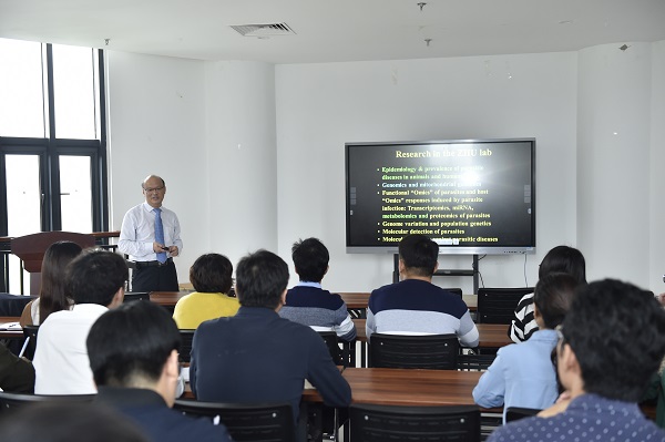 “龙湖论坛”邀请国际著名寄生虫学家、中国农业科学院兰州兽医研究所朱兴全研究员做了题目为“Research advances in parasite genetics, 'omits', molecular diagnosis, molecular vaccines and parasite-host interplay in the ZHU lab”的学术报告。报告会在龙子湖校区第一实验楼北530举行,九色视频