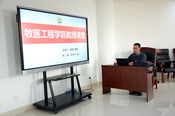 “教授讲堂”在第一实验楼北330会议室开讲,赵军教授作了题为《禽腺病毒致病机理和载体技术平台研究》的学术报告,院部分学生参加了报告会。