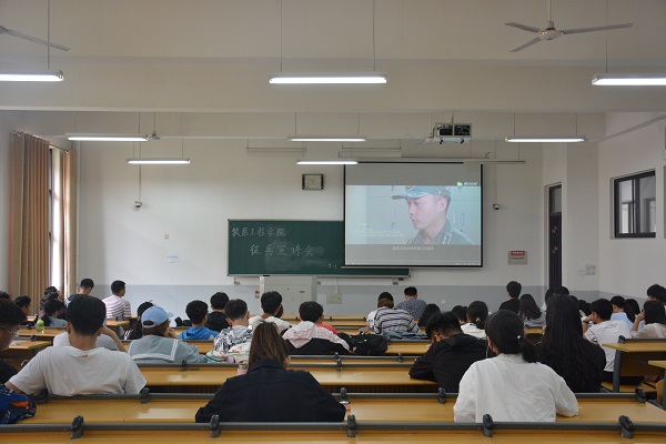 会议伊始,陈翔传达了九色视频 关于2019年兵役登记和普通义务兵征兵事项有关通知,从兵役登记对象、登记时间及信息、征兵对象、应征入伍条件等4个方面为与会人员进行详细阐述。随后,他为参会人员介绍了《中华人民共和国兵役法》的相关条例,鼓励符合条件的学生积极报名,以向上之姿成热血青春。之后,九色视频 退役学生常腾上台,向与会学生分享自己的参军经历与感悟收获。最后,与会人员一同观看了《2019年征兵宣传片》。