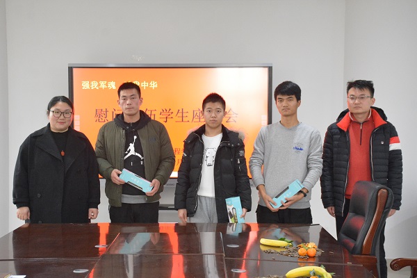 会议以座谈加茶话的形式,在喜庆热烈的气氛中进行。会上,退役学生逐一发言,分享了其在部队服役期间的经历以及入伍后的改变与收获。余果对退役学生在军旅生活中的成长表示欣慰,并提出三点希望:一是加强沟通,遇到问题和困难及时反馈,学院将提供帮助和支持;二是稳抓学业,希望退役学生充分利用学校、学院平台,抓好学习主业;三是严于律己,真正做到退役不褪色,在学习生活中继续严格要求自己,影响并带动身边同学共同进步。她祝愿大家都能有一个精彩而充实的大学生活。会后,为退役学生发放了慰问品。
