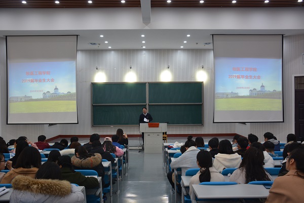 于龙子湖校区繁塔楼大教室2召开2019届毕业生大会,院党委副书记牛娟、副院长李奎、团委副书记韩笑及2019届全体毕业生参加会议,大会由韩笑主持。