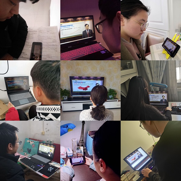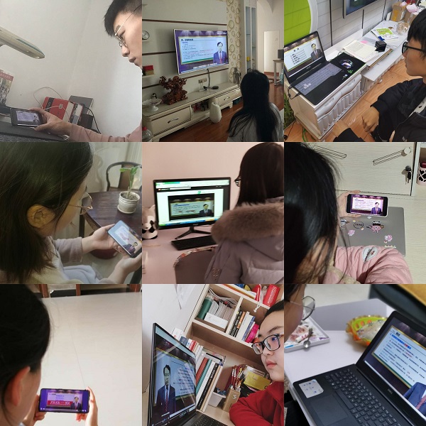 师生在不同地点不同“屏幕”前共同聚焦2020年这堂特殊的“开学第一课”。