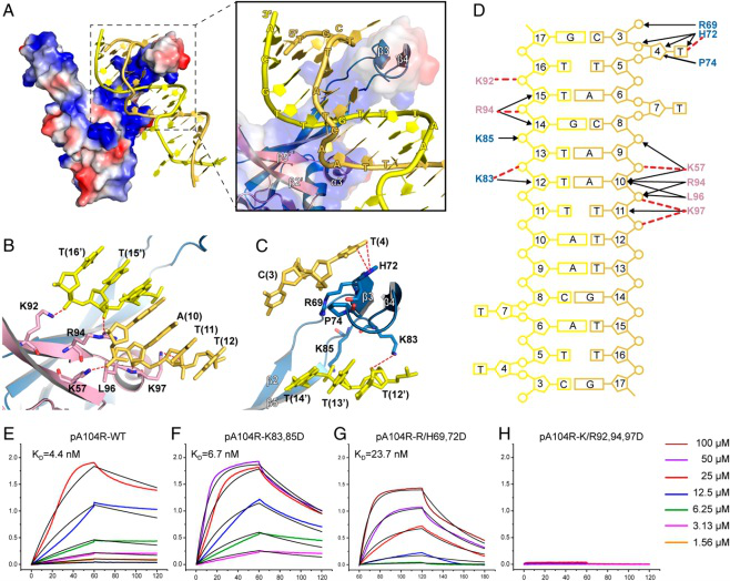 pA104R和DNA的原子间作用力分析 SD1/SD4对pA104R-DNA互作的抑制