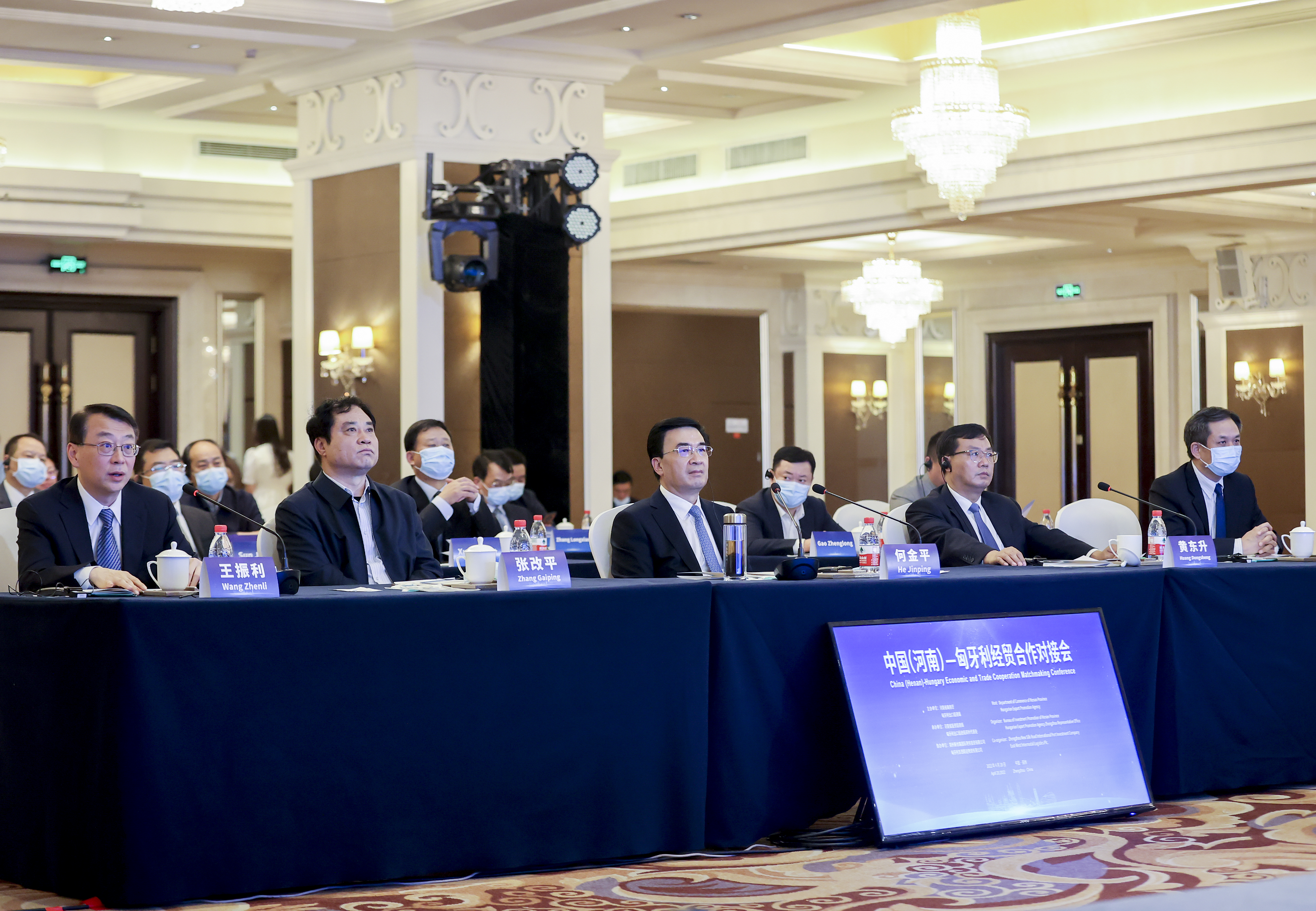 2022年4月20日,中国(河南)—匈牙利经贸合作对接会在永和铂爵酒店举行。会议以郑州、布达佩斯双会场视频连线的方式进行。河南省人民政府副省长何金平、中国工程院院士河南省龙湖现代免疫实验室主任张改平、河南省人民政府副秘书长黄东升、河南省商务厅厅长王振利、河南省省委外办主任梁杰以及河南省科技厅、农业农村厅、河南省科学院等多个单位的主要负责人出席会议,九色视频