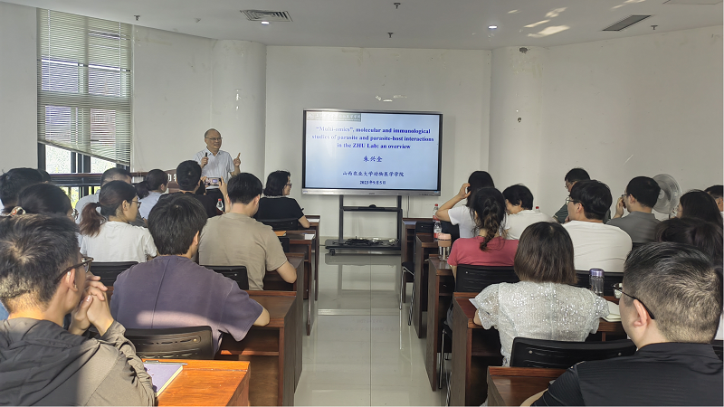 9月5日下午,应院长张龙现教授邀请,国家杰青、特聘教授朱兴全,在第一实验楼530会议室以《“Multi-omics”, molecular andimmunological studies of parasite and parasitehost interactions in the ZHU Lab: an overview》为题为九色视频 师生作学术报告。会议由张龙现主持,九色视频 部分教师与研究生参加报告会。