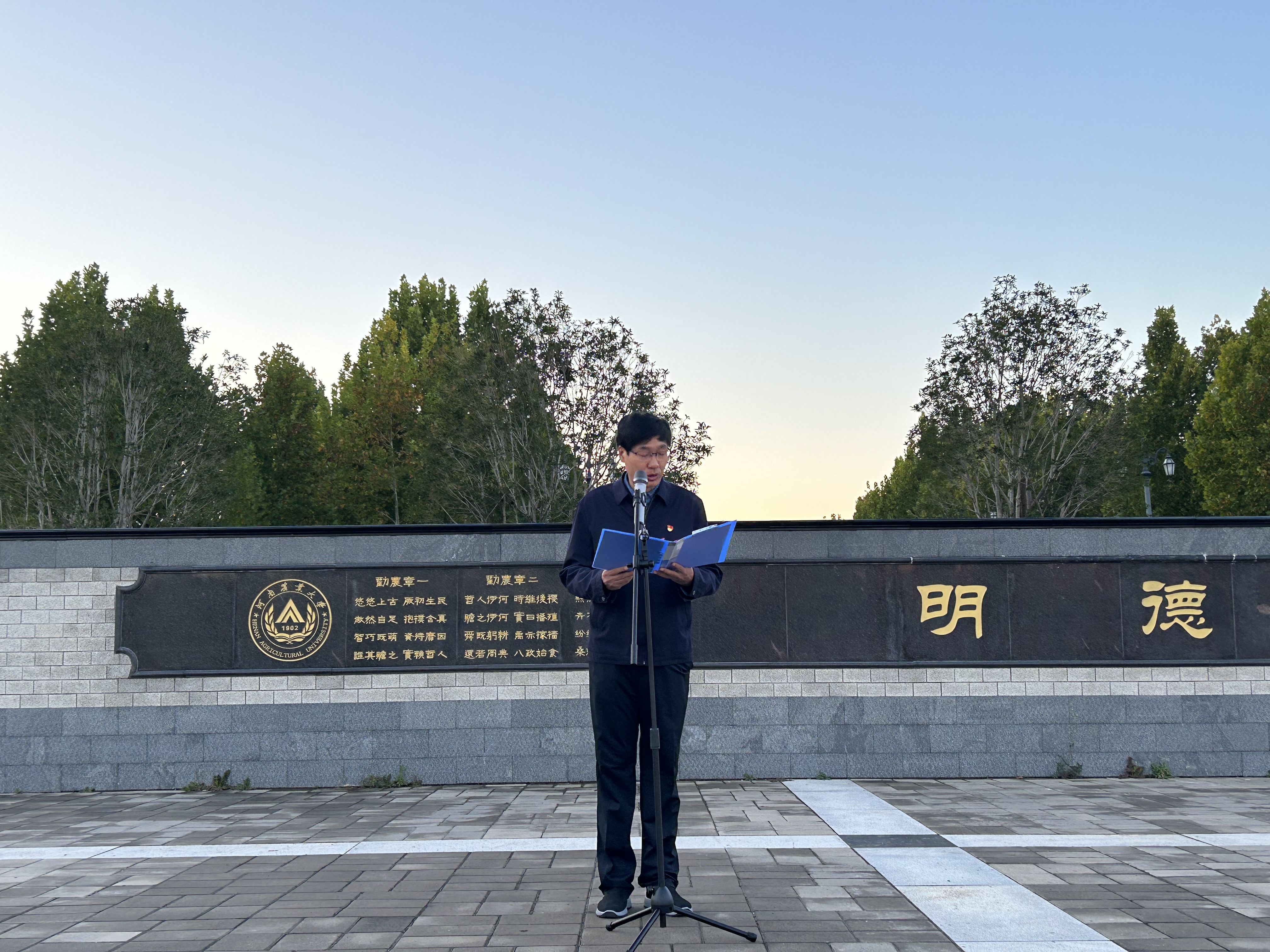 院党委书记廖仲磊发表国旗下讲话。他指出,当今时代是充满机遇与挑战的时代,是世界百年未有之大变局的时代,青年一代肩负重大使命,并对同学们提出四点希望:一是有理想,定方向,始终坚定不移听党话、跟党走,坚定理想信念,厚植家国情怀;二是敢担当,促作为,发扬不畏艰险敢为人先的改革精神,做新时代敢担当的好青年;三是能吃苦,为奉献,在吃苦中砥砺德行、锤炼本领,在奉献中彰显青春底色;四是肯奋斗,彰底色,在接续奋斗中将中华民族伟大复兴的中国梦变为现实。