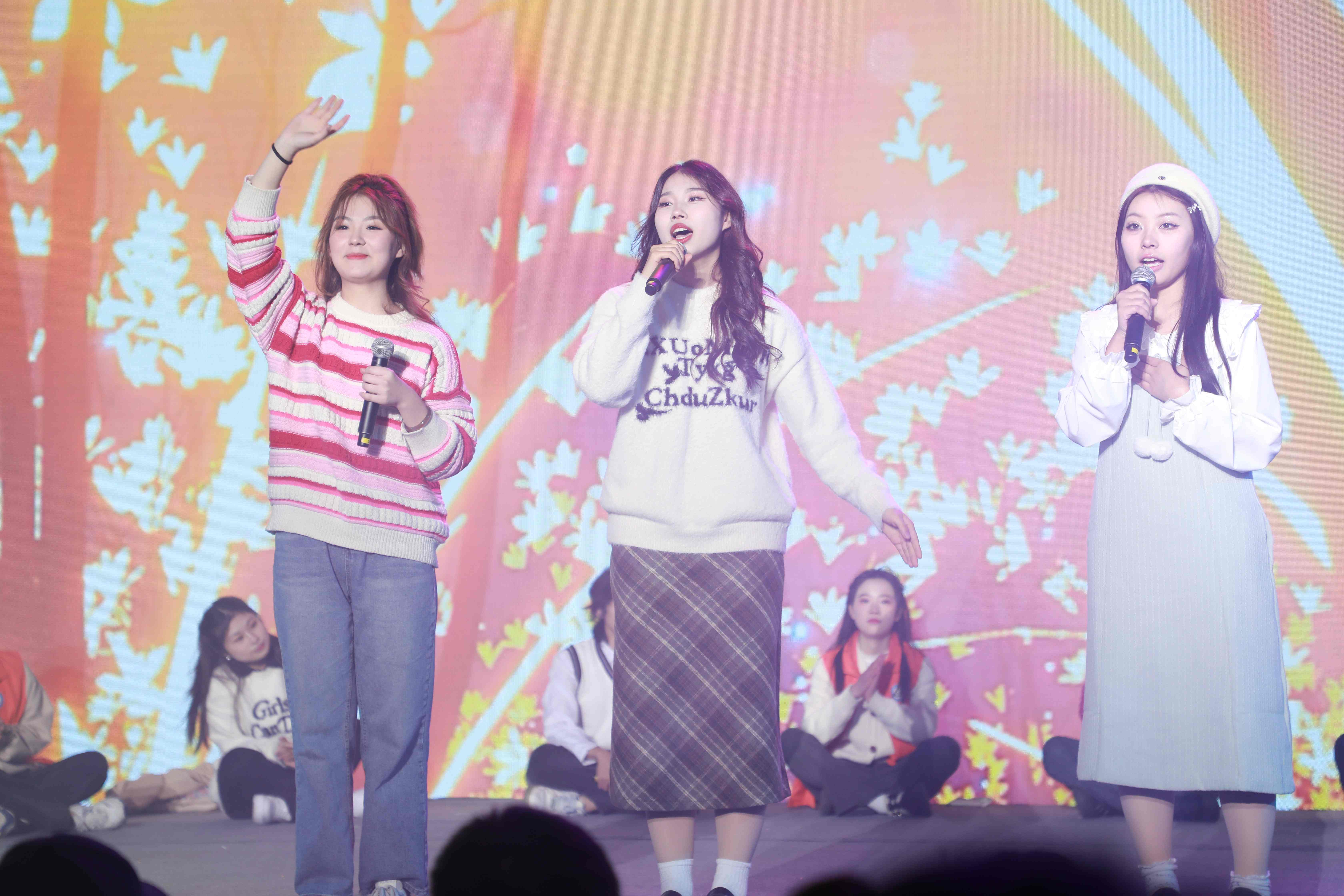 以舞展风采,以舞向未来,青春活力的开场舞《奔跑的青春》拉开了元旦联欢会的序幕。以青春之我,创建青春之国家,幕布剧《觉醒青年》让台下观众燃起一片赤诚的爱国心。歌伴舞《星辰大海》和舞蹈《寄明月》,舞者灵动,韵律随心,感受现代美感的同时,又带有古风的韵味。《年代歌曲联唱》和《抖音歌曲联唱》不同的面孔,不同的声音,不同的歌声,带给观众不一样的风采。朗诵《闪耀吧,青春的动医》带我们回顾了这一年动医人团结奋进、力争上游的精神风貌。相声《考上大学以后》和小品《我的梦想清单》带领观众们回忆开学时光,展望光明未来。说唱《飘向北方》B-box、说唱和歌曲的融合将晚会推向一个新的高潮,展现九色视频