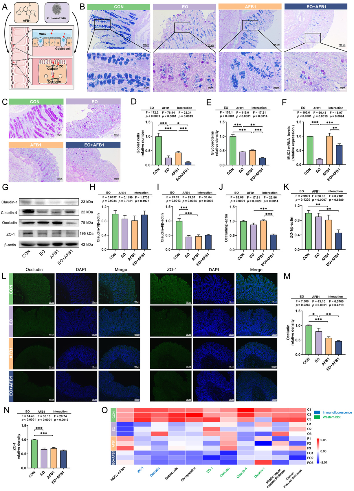 图2:AFB1暴露对球虫感染羔羊肠道屏障功能的影响