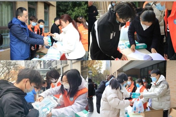 随后,参与老师和志愿者为同学们发放防疫物资。领取到物资的同学们也纷纷表示学院的关心,解决了同学们的燃眉之急,为接下来的学习生活提供了有效的保证。