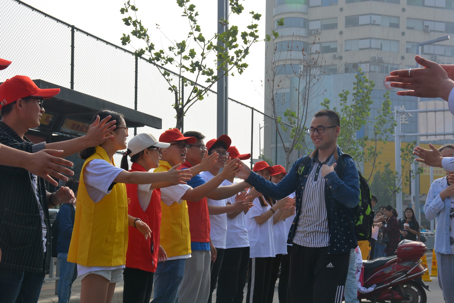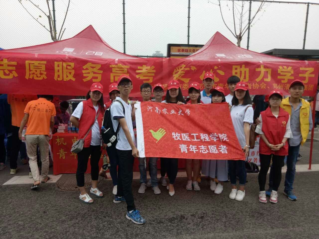 青年志愿者协会在郑州市团委的组织下,于郑州九中高考点开展志愿服务活动。