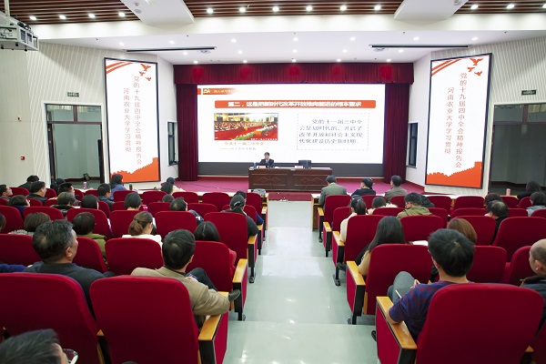 与文法学院、外国语学院、国际教育学院、马克思主义学院共同举办了学习贯彻党的十九届四中全会精神报告会。报告会由学校宣讲团成员、马克思主义学院秦剑军教授主讲,国际教育学院党委书记张留占主持。学院全体教工及研究生、学院青马班学生、主要学生干部参加会议。
