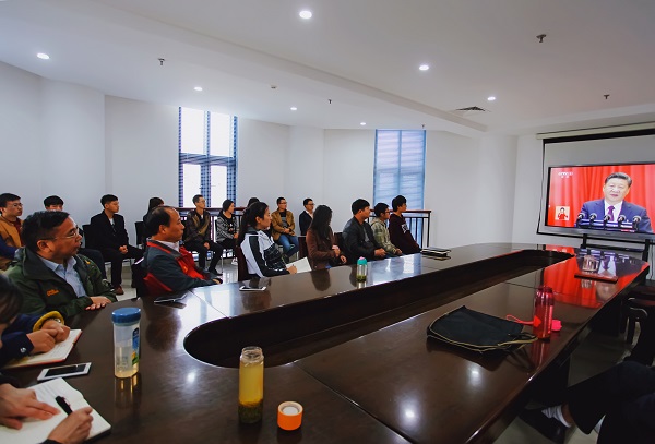 9点整,开幕式正式开始,所有人的目光都集中在前方的大屏幕上,认真聆听,不时记录。听总书记的报告,大家备受鼓舞,为我们国家发展取得的辉煌成就感到振奋,纷纷表示要提升四种意识,坚持四个自信,按照“五位一体”、“四个全面”战略布局,为决胜全面建成小康社会、努力开创中国特色社会主义新局面贡献力量。