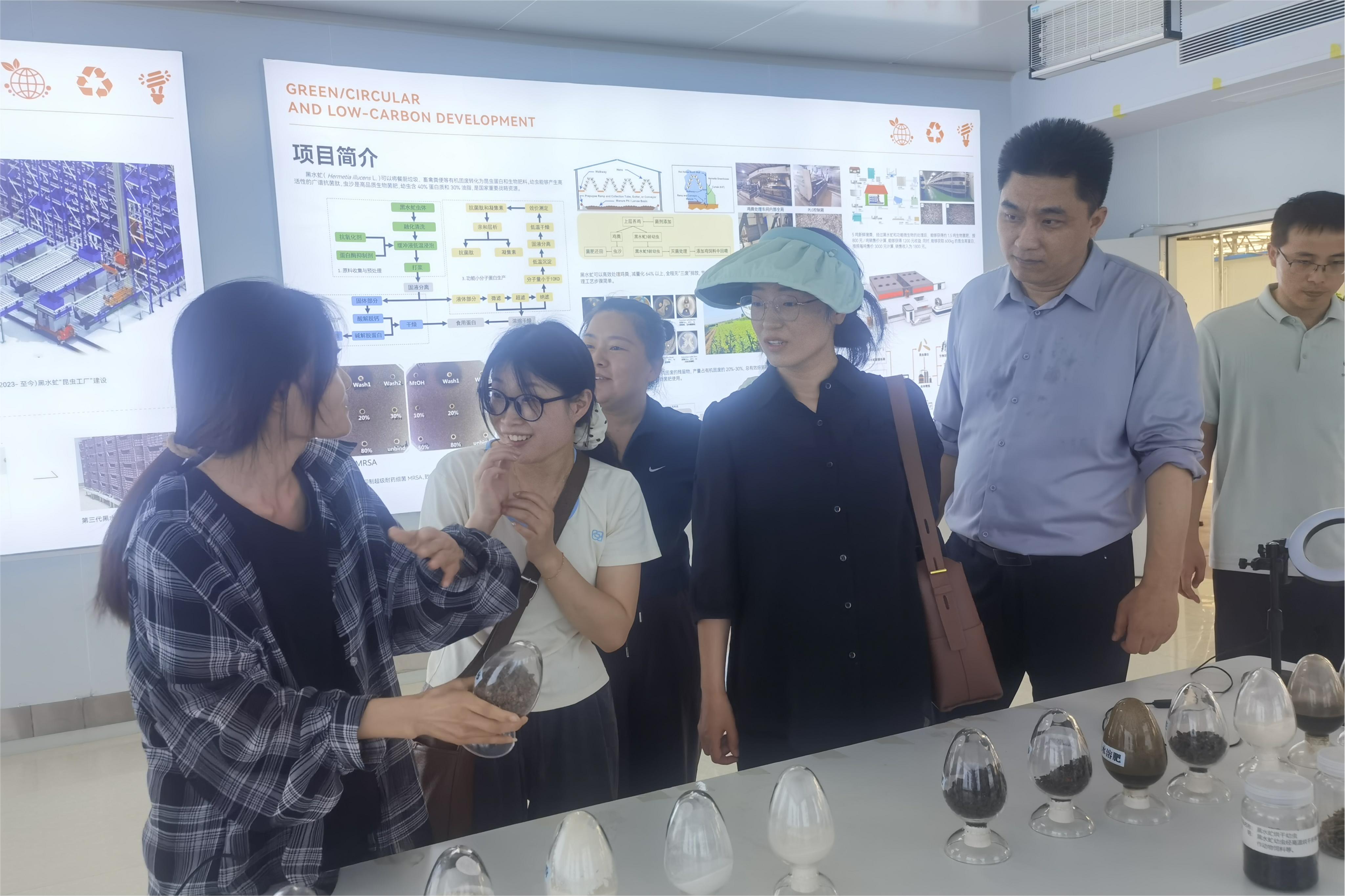 首站研学——参观黑水虻生物转化技术。在杨森教授团队指导建设的黑水虻生物转化基地,新教师们深入了解“虫-菌互作”技术在有机废弃物资源化利用中的创新应用,实地观察了黑水虻养殖流程、产物加工及应用场景,深刻体会到科研成果转化对生态农业发展的推动作用。随后,参观队伍走进学院动物实验基地,近距离观摩了畜禽疫病防控实验。最后,在基地试验田中,新教师们以“学员”身份参与田间劳动,从翻土整垄到播种覆土,切身体验农业生产实践。