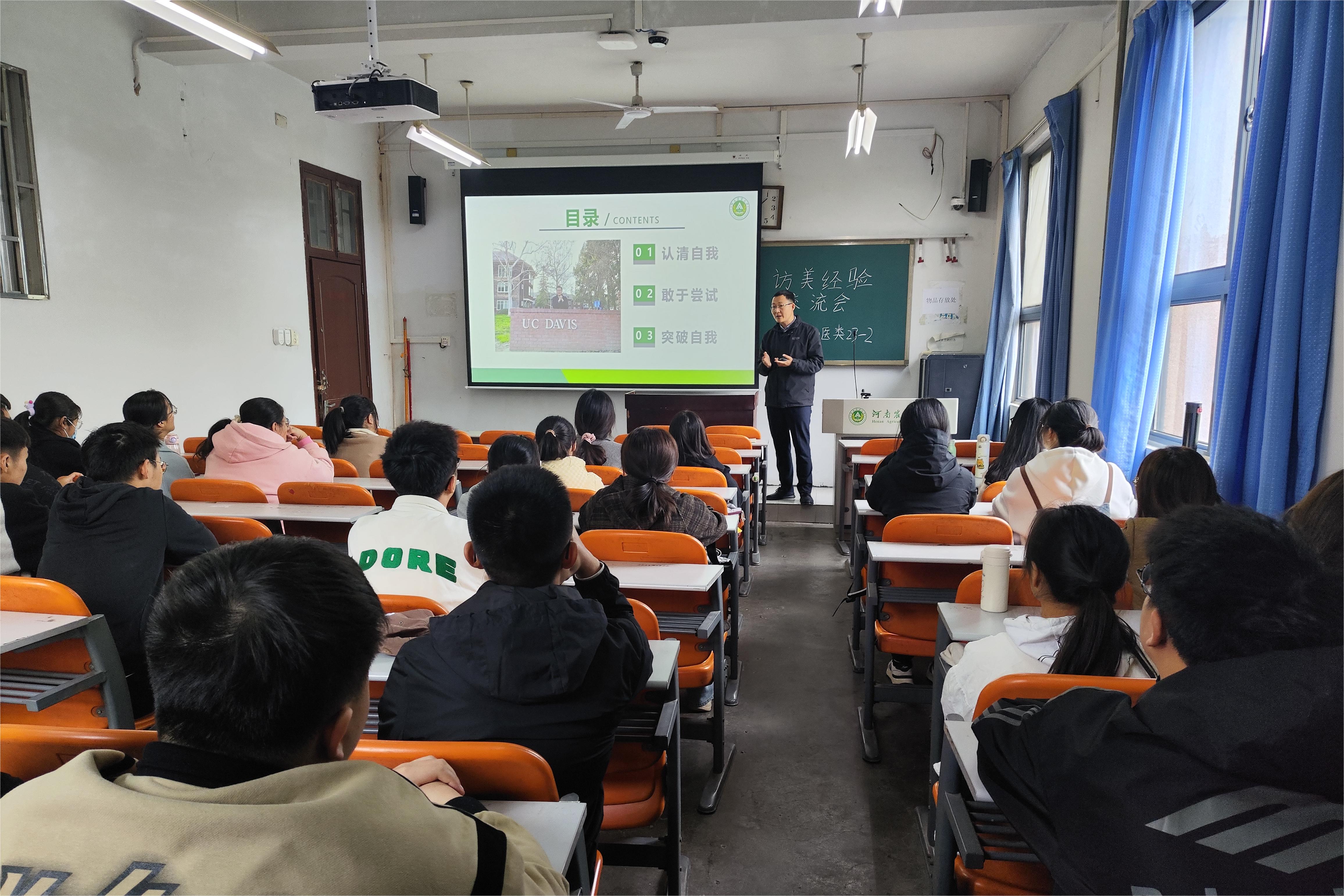 赴美学子根据自己的研学经历,以照片、视频等方式,向同学们分享了加州戴维斯分校的学习生活、文化特色及自己在国外学习后的收获与感悟,帮助同学们增强专业自信,明确自己的未来发展方向。各班班主任对同学们提出谆谆期望,希望同学们以优秀学长学姐为榜样,提高自身学业水平,抓住每一次机会,争取走出国门去现实自身梦想。同学们纷纷表示研学班会收获满满,一定会努力学习专业知识,不忘初心,砥砺前进。