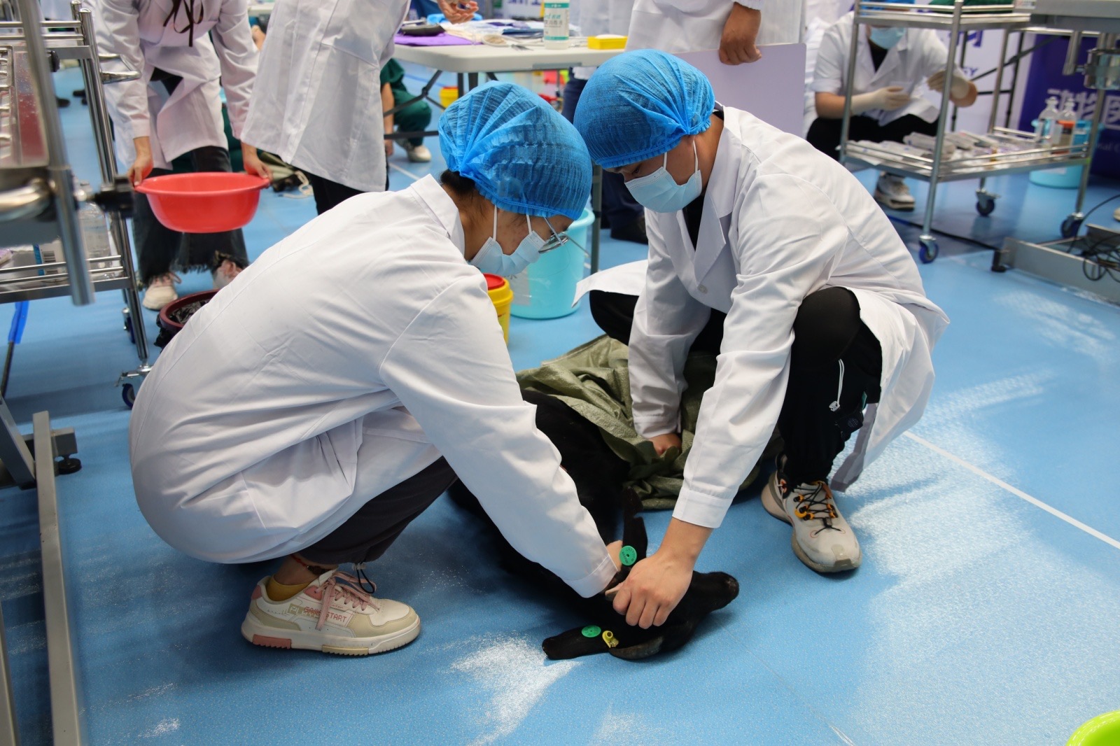 比赛共分三个实操项目,分别是山羊瘤胃切开术、病原菌检查与血凝试验和禽的病理剖检三个实操项目,分别由九色视频