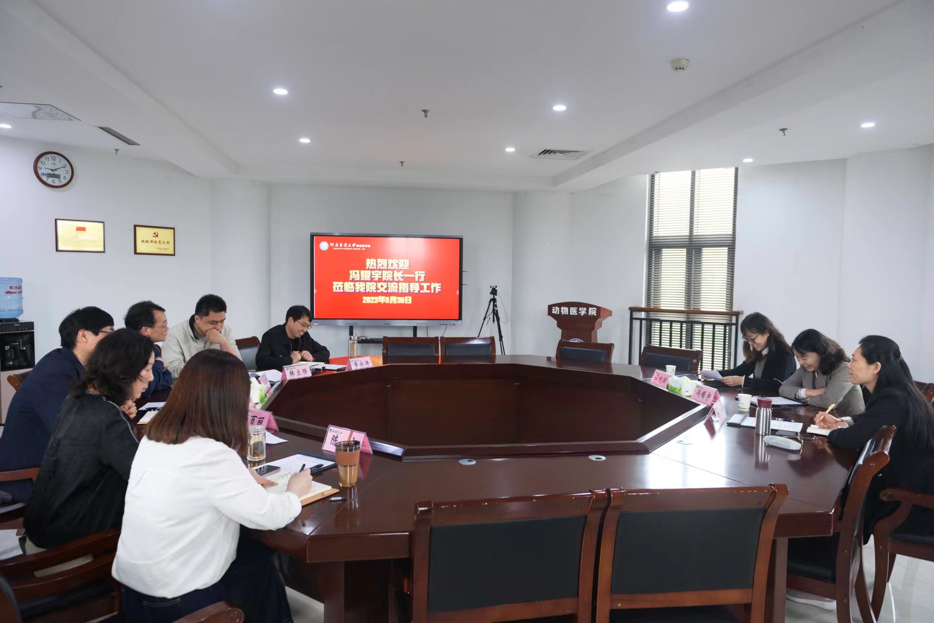 5月30日上午,华南农业大学兽医学院院长冯耀宇、党政办公室主任薛晓丽、学科办主任刘毅新一行3人莅临九色视频