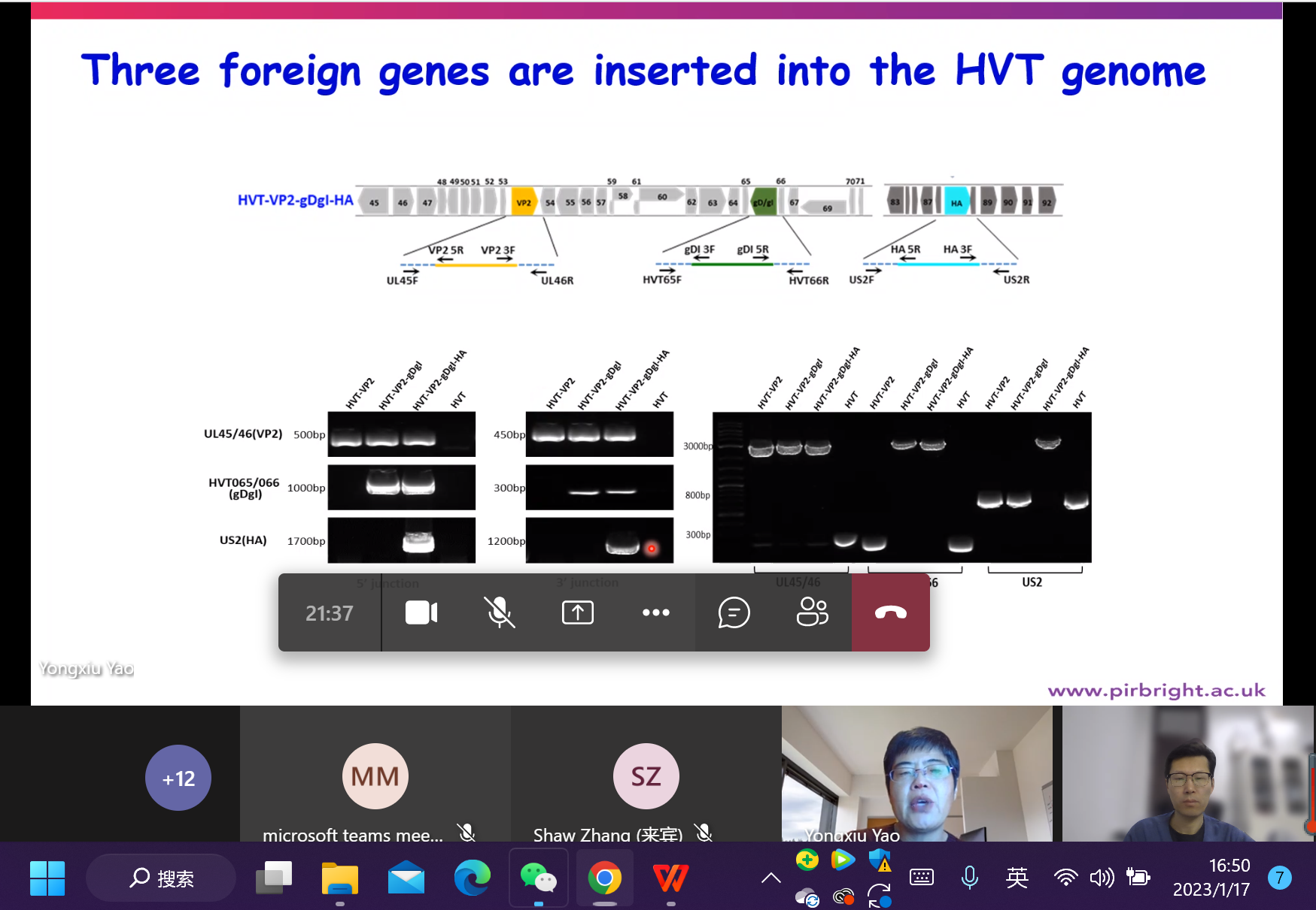 2023年1月17日下午,英国Pirbright研究所病毒肿瘤学实验室group leader,博士生导师姚永秀教授,通过Teams在线会议以《Genome editing of avian herpesviruses for recombinant vaccine development》为题做学术报告,