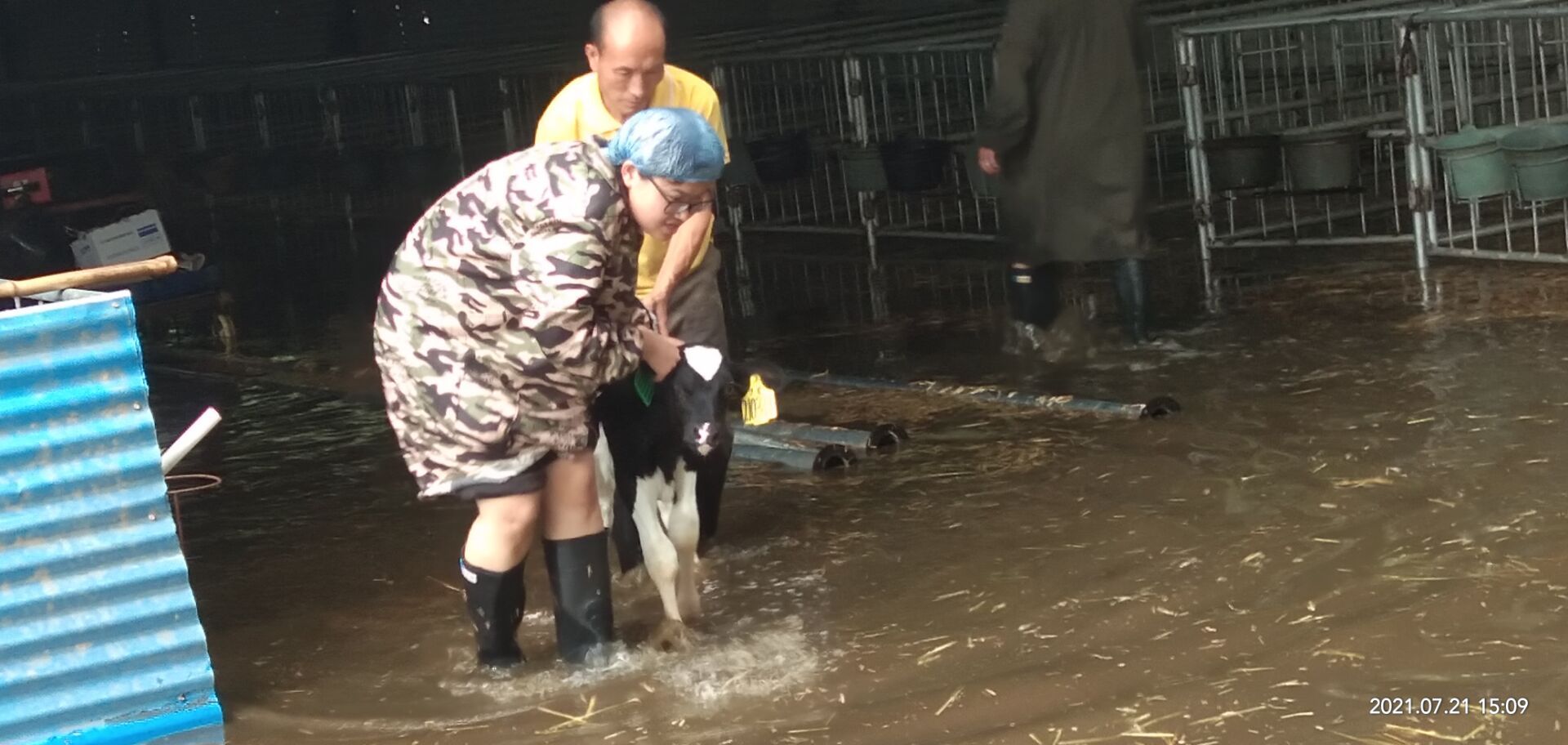 实习生奋力转移犊牛