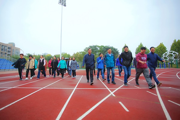 迎着深秋的蒙蒙细雨,薄雾笼罩大地,空气清新自然,雨中的龙子湖校园美不胜收。广大教职工在院党委副书记牛娟的带领下,身穿运动装备,脚踩舒适的运动鞋,开始围着操场快步走起来。大家三五成群,快速走来,不多久,身上开始微微出汗,一边锻炼,一边享受难得的交流机会,活动现场气氛融洽、兴致盎然。