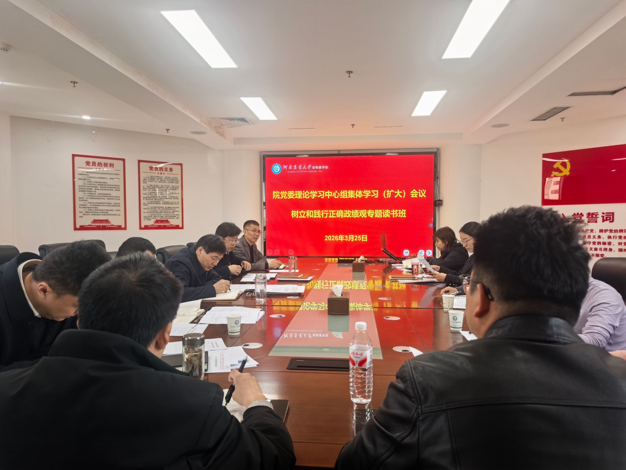 于3月24-25日召开院党委理论学习中心组集体学习(扩大)会议,举办树立和践行正确政绩观学习教育读书班。院领导班子、党委委员、国免中心领导班子和各教工党支部书记参加。