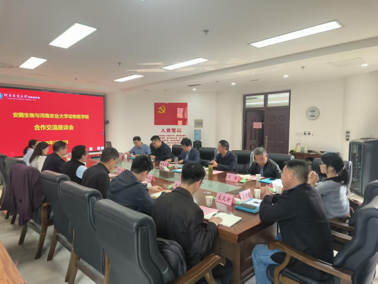 在动物医学领域的深厚办学积淀与鲜明学科优势。他表示,高校与企业是创新链、产业链融合发展的关键主体,希望双方充分发挥各自优势,在科研联合攻关、科技成果转化、优秀人才输送等方面找准合作契合点,实现资源共享、优势互补、互利共赢。