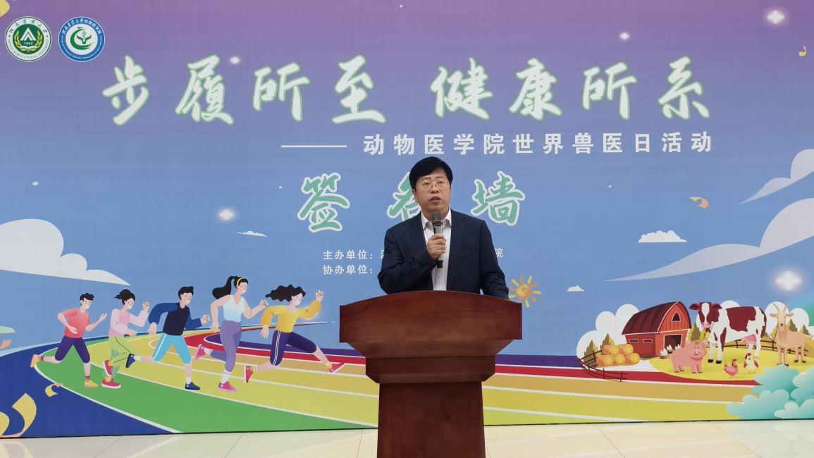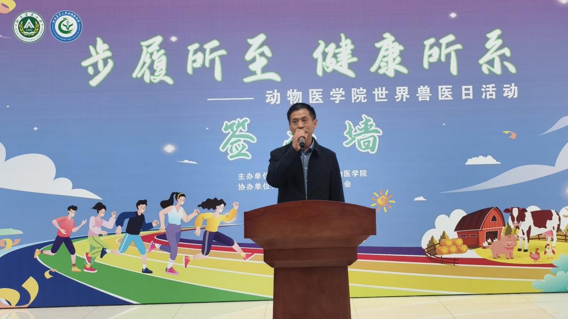 为庆祝世界兽医日,弘扬兽医精神,凝聚青年学子奋进力量,4月25日上午,我院在龙子湖校区开展“步履所至,健康所系”世界兽医日活动。院长魏战勇、党委副书记杜家方和副院长王荣军出席活动,辅导员及全体25级研究生参加活动。