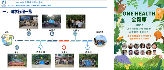 研究生分组进行主题汇报,由博士生乔麒龙和硕士生李潮参与的小组作《热带雨林生物多样性报告及全健康实践调研》主题汇报;由博士生陈峥和硕士生郭萌、张俊锴、宋汶羲参与的小组作《将One Health理念融入乡村振兴战略》主题汇报。